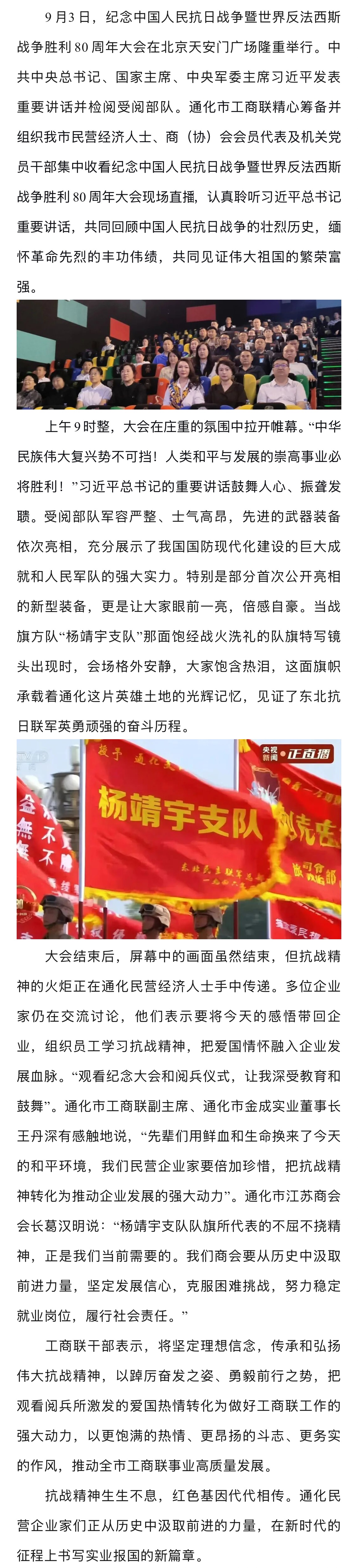 通化市工商联集中收看纪念中国人民抗日战争暨世界反法西斯战争胜利80周年大会